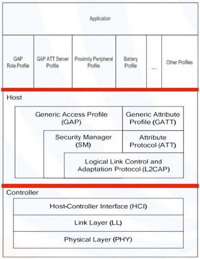 Capa de conexión LL: el chip de control funciona en uno de los cinco estados de espera (preparación), publicidad (transmisión), escaneo (escucha y escaneo), iniciación (iniciando conexión) y conectado (conectado). El dispositivo que inicia la conexión se convierte en maestro (master), y el dispositivo que acepta la solicitud de conexión se convierte en esclavo (slave).